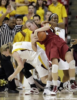 This was a notable game for Jayne. It was the 138th game of her career, which is a new Stanford record. With her fifth rebound, she set a new Pac-10 record for career rebounds. She ended this game with 11 points, eight rebounds, an assist, a block and two steals. She had no bandage on her right hand, so apparently Thursday's injury was nothing serious.